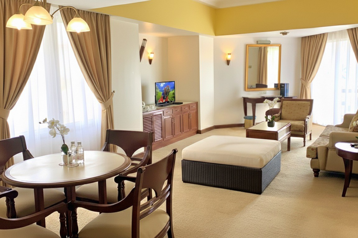 Treating yourself to a luxurious getaway, our Executive Suite features separate living and sleeping areas, premium amenities and an elevated balcony view of the sea.